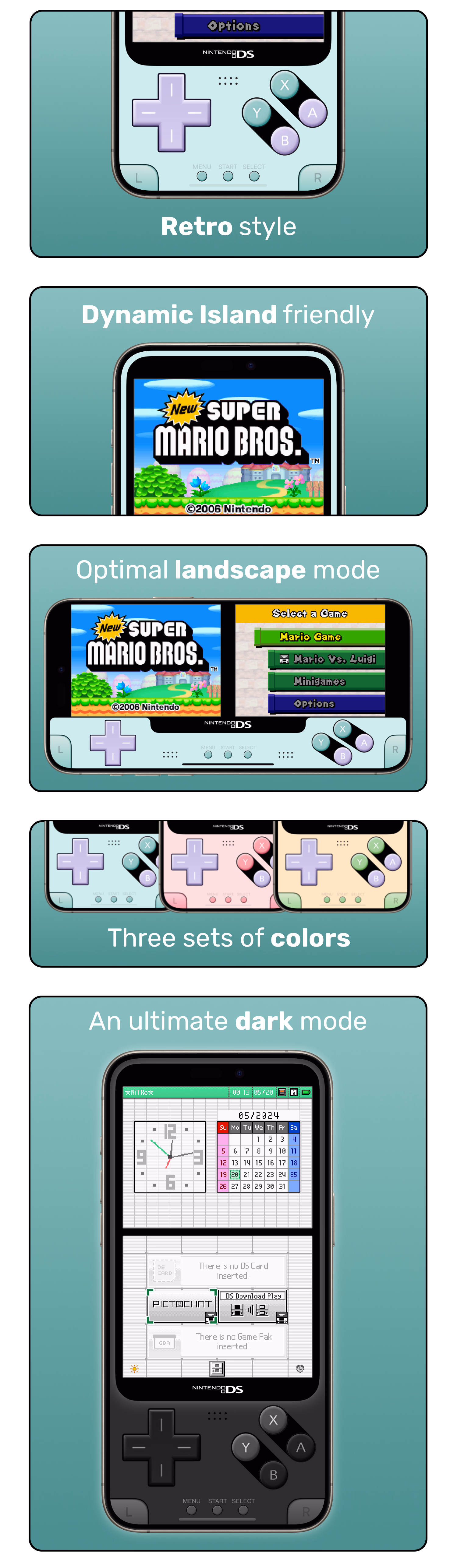 A family of Nintendo DSâ„¢ skins designed to enhance your experience with the Delta emulator app on iOS.
